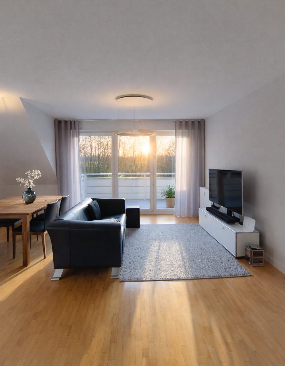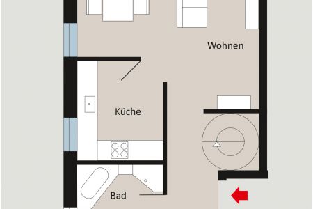 Das Entrée führt direkt in den großzügigen Wohn-Ess-Bereich mit Zugang zum sonnigen Balkon. Von hier aus genießen Sie einen freien Blick ins Grüne. Die separate Küche ist funktional geschnitten. Auf dieser Wohnebene befinden sich zudem ein Schlafzimmer sowie ein Tageslichtbad mit Dusche und Badewanne.