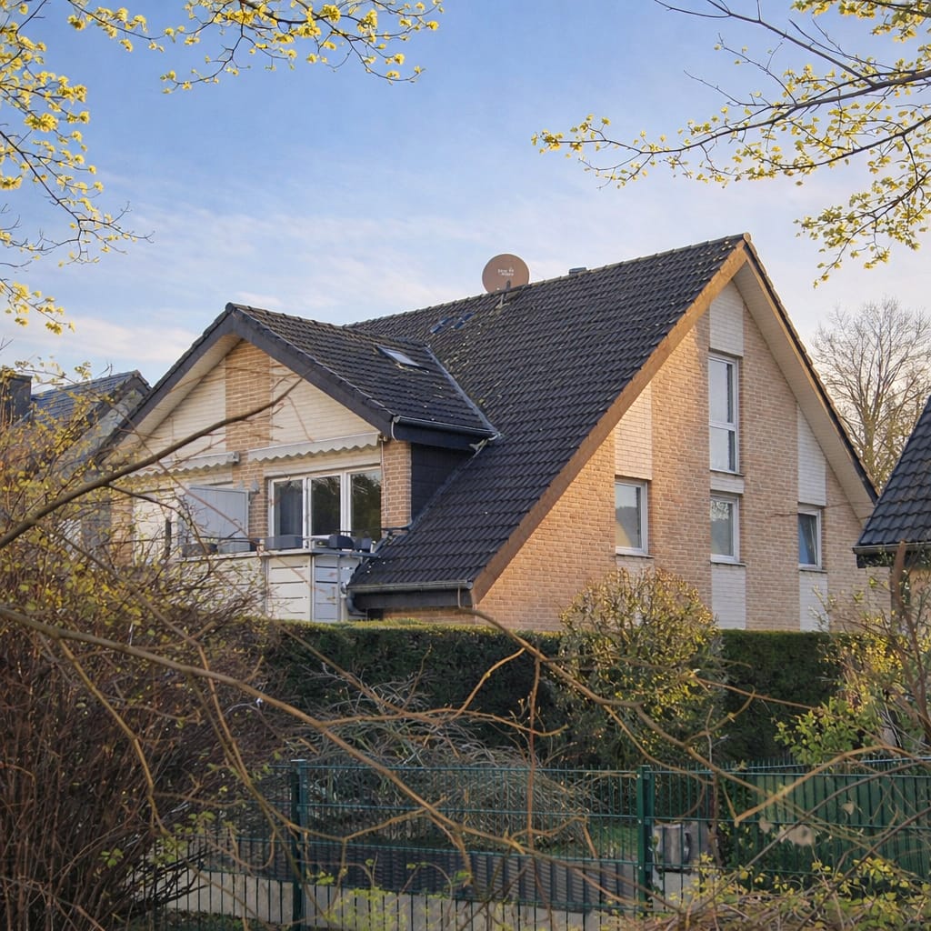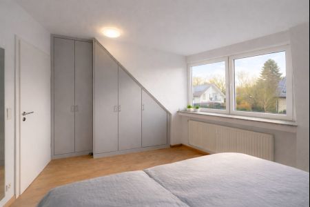 Das freistehende Mehrfamilienhaus mit nur vier Wohneinheiten befindet sich in beliebter Lage in Dinslaken am Claushof 29 und wurde im Jahr 2000 errichtet. Über ein gepflegtes Treppenhaus erreichen Sie im ersten Obergeschoss die Maisonettewohnung „Claus 29“, die sich über zwei Ebenen bis in das Dachgeschoss erstreckt.