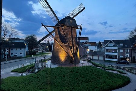 Hiesfeld, auch bekannt als das Mühlendorf im Grünen, bietet eine charmante Dorfatmosphäre mit gemütlichen Einkaufsstraßen, einem bunten Marktplatz und einem vielfältigen Sport- und Kulturangebot. Der Rotbachsee und das Rotbachtal bieten herrliche Natur direkt vor der Haustür mit Freizeitmöglichkeiten wie Reiten, Radfahren, Wandern und vieles mehr. Die Lage der Wohnung in Dinslaken-Hiesfeld ist ideal. Sie profitieren von einer ruhigen Wohngegend und sind dennoch gut an das öffentliche Verkehrsnetz angebunden. Einkaufsmöglichkeiten, Schulen und Kindergärten befinden sich in unmittelbarer Nähe. Die Verkehrsanbindung von Dinslaken-Hiesfeld ist ebenfalls gut ausgebaut. Die Autobahnauffahrten A3 und A59 erreichen Sie in 5 - 8 Minuten, was eine schnelle Anbindung an umliegende Städte zwischen Holland und der Metropole-Ruhr ermöglicht.