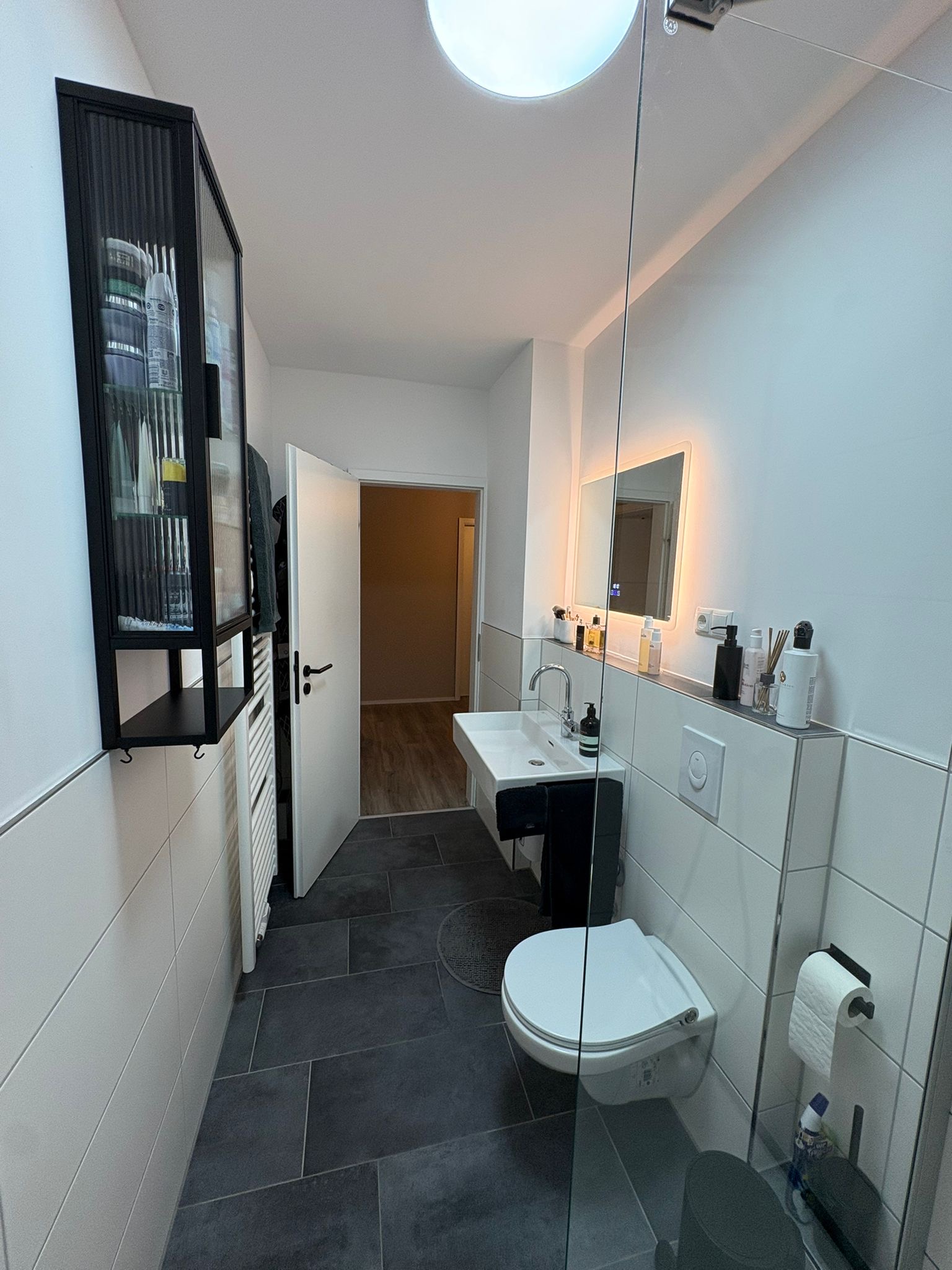 Diese im Jahr 2024 sanierte Wohnung befindet sich in der zweiten Etage eines 5 Parteien Hauses in guter Lage von Dinslaken-Hiesfeld auf der Riemenschneiderstr.2. Ruhe, gute Nachbarschaft und Naherholung bietet die großzügig geschnittene Wohnung mit 3 Zimmern und ca. 70 m² Wohnfläche. Aufgrund ihrer Größe ist die Wohnung besonders für Einzelpersonen oder Paare geeignet. Die Wohnung ist über das gepflegte Treppenhaus zu erreichen und bietet mit ihrem attraktiven Grundriss und dem sonnigen Balkon ein Höchstmaß an Wohnqualität. Über die einladende Diele erschließt sich die Küche, ein modernes Tageslichtbad mit bodengleicher Dusche, das geräumige Schlafzimmer, der helle Wohn-/Essbereich mit angrenzendem Balkon, das Arbeitszimmer und ein kleiner Abstellraum. Zur Wohnung gehören ebenfalls ein Kellerraum sowie ein Fahrradkeller.