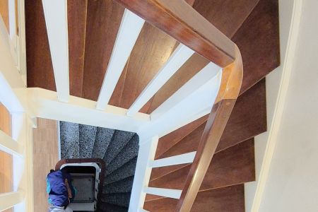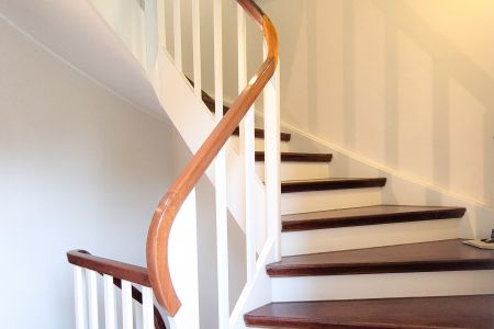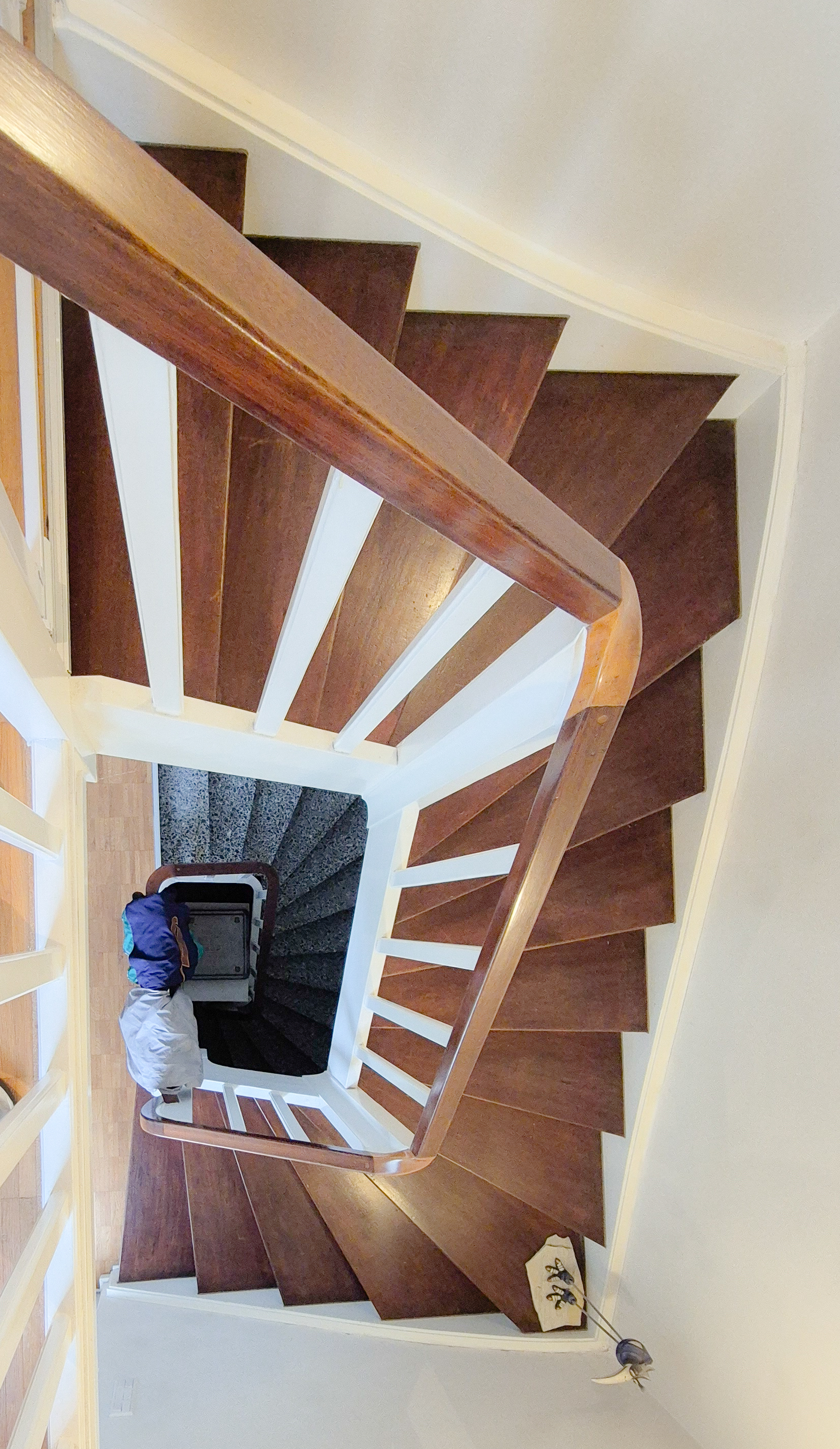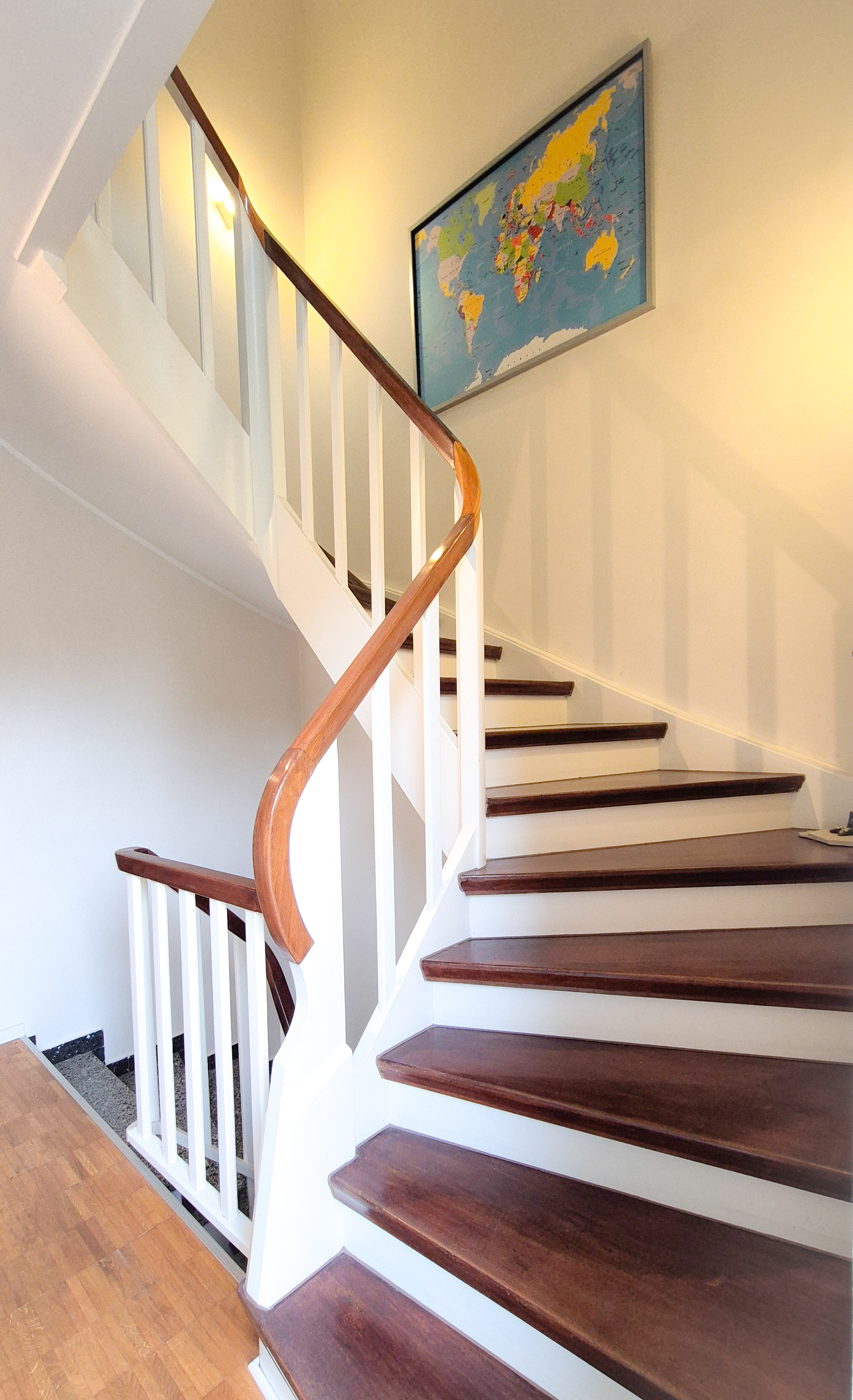 Über die Treppe im Flur erschließen sich die beiden Wohnebenen: